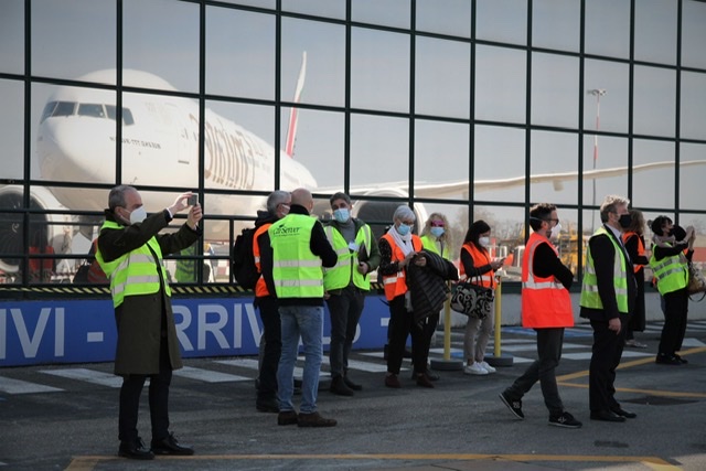 Sulla scia dei precedenti e’ stata compiuta una visita al terminal, mostrando le dotazioni per il mercato di riferimento e le dotazioni di sicurezza in questo momento in relazione al Covid-19. La visita alla MBL – Marconi Business Lounge oltre a mostrare il profitto, e’ stata seguita da una conferenza alla quale hanno partecipato funzionari aeroportuali e commerciali della Emirates. Poi, c’è’ stata la visita al velivolo Boeing 777-300ER della compagnia aerea mediorientale giunto da Dubai. Nelle due ore di sosta tra lo sbarco e imbarco dell’aereo c’è’ stata la possibilità per mostrare i tre prodotti passeggeri : first class, business class e economy class. Oltre a cenni sul servizio cargo.