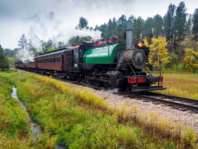 1880 TRAIN – Situata nel cuore delle Black Hills, la ferrovia Black Hills Central Railroad gestisce un unico treno chiamato “1880 Train”, una strada ferrata storica, creata durante il boom minerario del 1890. Le corse in treno partono sia da Hill City che da Keystone, piccole località minerarie nelle Black Hills. Il breve viaggio di due ore andata e ritorno, riserva lo splendido scenario naturale delle colline passando attraverso miniere abbandonate, avvistando cervi, lepri, tacchini selvatici su Tin Mill Hill e nell’Oblivion, tra lo sferragliare, e il lamentoso fischio di un treno d’epoca originale con la sua locomotiva a vapore. Le colline centrali delle Black Hills abbondano di foreste, prati e canyon con boschi. La maggior parte dei binari segue il torrente Battle Creek, sede dei cercatori d’oro a fine ‘800 ed inizi ‘900. Il treno attraversa il patrimonio forestale e consente di scorgere i resti di vecchie miniere e le operazioni minerarie. Alcuni di questi giacimenti minerari sono stati trasformati in terreni residenziali, e alcune case sono visibili dal treno. County Road 323 insieme ad alcuni accessi privati, attraversa più volte i binari del treno, dando ai passeggeri la possibilità di godere del suono di un fischio a vapore. Intanto ci si può deliziare con cibo, popcorn e dolciumi serviti a bordo. Corse speciali offrono intrattenimento dal vivo per tutta la famiglia: si rimane coinvolti in un vero e proprio spettacolo ferroviario con l'”Old West Shootout” poichè una coppia di fuorilegge si imbarca sul treno 1880 per nascondere un tesoro e poi si accapiglia con alcuni cowboy e uno sceriffo. A bordo c’é anche la mascotte Chug, un bisonte ingegnerie ferroviario che racconta ai bambini storie divertenti di treni. Il viaggio di 10 miglia all’ora narrato lungo il percorso, dà il tempo ad ogni bambino di risolvere un grande dilemma appena si arriva a Keystone: se acquistare un caramello o un gelato!