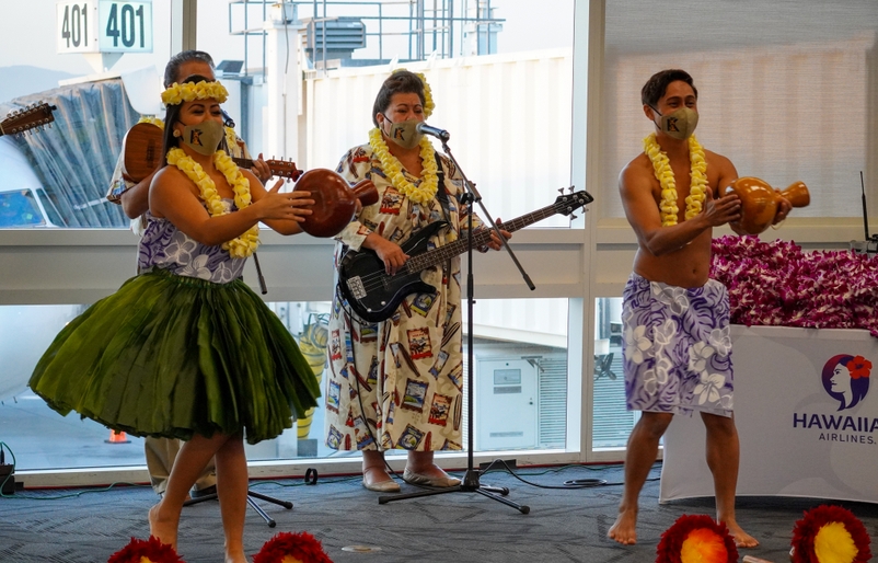 Gli Hawaiian Airlines Serenaders si sono esibiti per gli ospiti all’aeroporto internazionale di Ontario