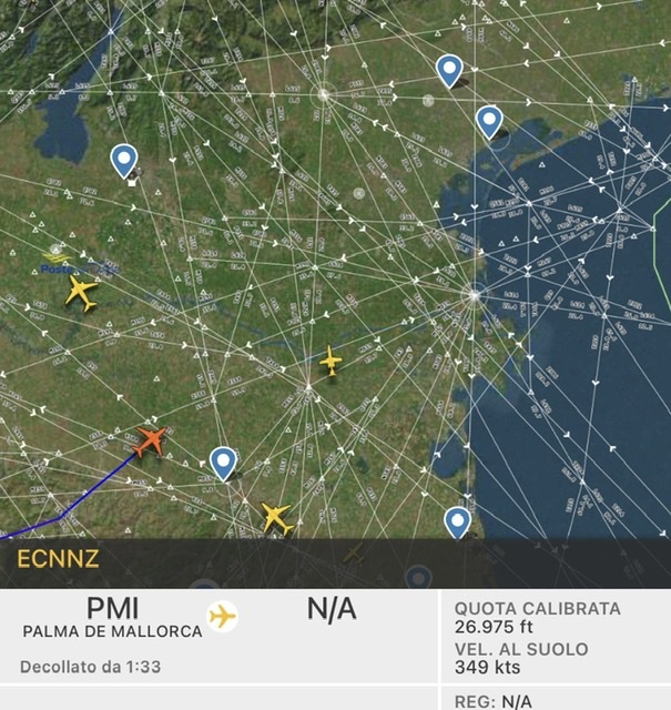 Da N621VA e’ diventato EC-NNZ ed e’ nella fase finale del volo di trasferimento da Palma di Maiorca a Venezia.