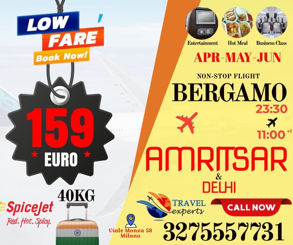 I voli della SpiceJet operati da Bergamo per Amritsar / Delhi continueranno fino a tutto il mese di giugno, così come e’ riportato nella locandina.