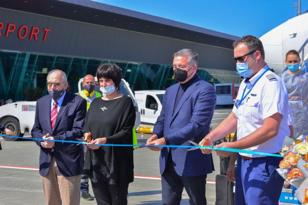 Taglio del nastro per l’apertura del volo con il Ministro del Turismo Blendi Klosi.