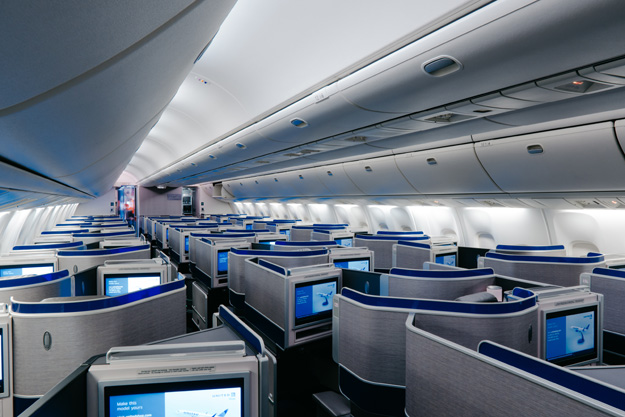 La cabina premium di United dispone di sedili con reclinamento fino a essere orizzontali su tutti i voli come offre tra Newark-Los Angeles e Newark-San Francisco, fornendo un prodotto uniforme e completo da New York alla costa occidentale. Questo include il caratteristico cuscino realizzato con gel rinfrescante insieme alla coperta e al cuscino della Saks Fifth Avenue. Le rotte offrono menù stagionali realizzati da rinomati chef con particolari piatti. Ciò include entrambi i viaggiatori nelle sezioni United Business e United Premium Plus che godono di un antipasto caldo gratuito, noci miste, insalata e dessert, nonché bevande alcoliche gratuite. Le sezioni Economy Plus® ed Economy includono un kit snack all-in-one United e il programma di acquisto a bordo della compagnia aerea, che ritorna il 12 aprile. I clienti idonei avranno accesso alla sede United ClubSM a LAX o SFO.