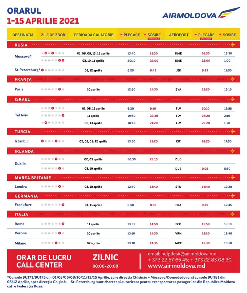 AirMoldova nella prima quindicina del mese di aprile ha pianificato pochi voli vista la situazione contingente del covid-19 in ambito generale.