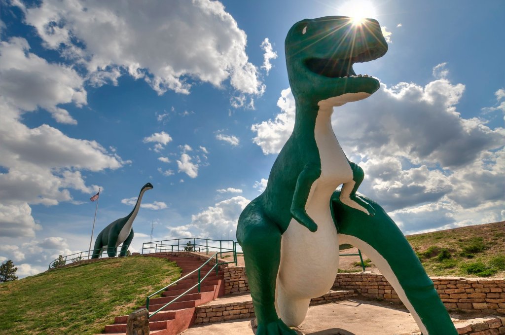 DINOSAUR PARK: scoprite gli enormi 7 dinosauri che si affacciano sullo skyline di Rapid City che sorvegliano la città sulla Skyline Drive fin dagli anni ’30. Emmett Sullivan, che ha lavorato sul Monte Rushmore, li ha progettati!