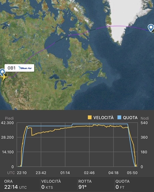E’ decollato alle 15:31 locali, un oretta prima dei due aerei Neos e attualmente e’ a Keflavik per rifornimento. L’aereo con le marche YR-MXA ripartirà poi per Bucarest.