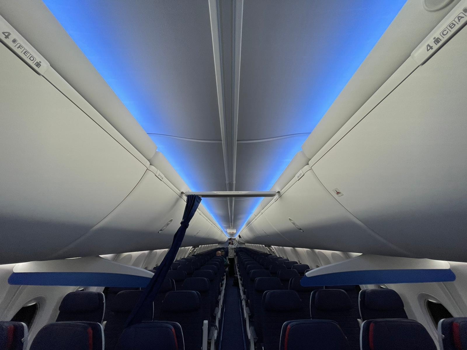 Gli Sky interiors del B737-8 MAX della Blue Air. L’aereo e’ arrivato ieri da Boeing Field a Bucarest via Keflavik.