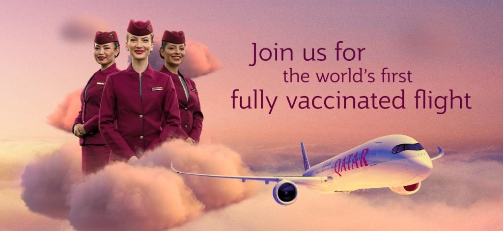 Qatar Airways ha operato oggi il primo volo al mondo con equipaggio e passeggeri completamente vaccinati. Il volo QR6421 è partito dall’aeroporto internazionale di Hamad alle 11:00 con a bordo solo equipaggio e passeggeri vaccinati, e i passeggeri sono stati serviti da personale completamente vaccinato al check-in.