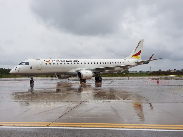 Da Farnborough e’ arrivato questo E190 della German Airways con le marche D-AWSI.
