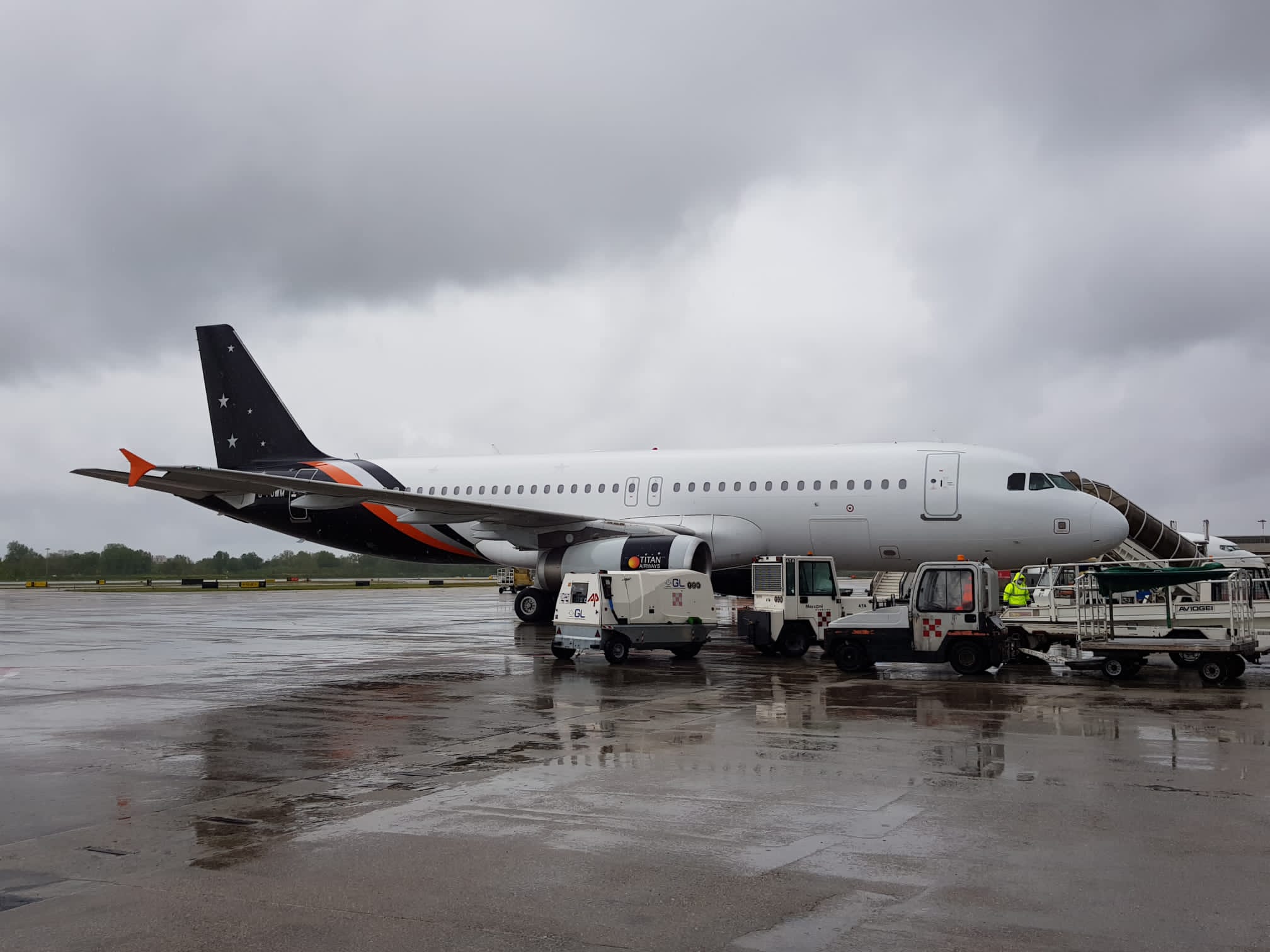 Il più grande velivolo arrivato ieri a Bologna dal Regno Unito e’ stato questo A320-200 G-POWM della Titan Airways. I voli hanno trasportato singolarmente i team di F1.