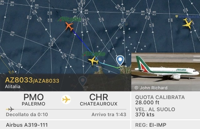Due aerei Alitalia oramai da qualche tempo in parcheggio a Palermo privi di titoli e la colorazione rimossa stanno volando via verso Chateauroux, non lontano da Parigi. Utilizzano il call sign e numero di voli Alitalia, ma la loro fine e’ oramai segnata dalla uscita di flotta. Gli aerei sono i primi due A319-111EI-IMP e EI-IMR, tra l’altro abbastanza giovani essendo stati ricevuti nel periodo Alitalia – CAI e fanno parte dell’ordine a suo tempo stipulato da AirOne e portato in dote alla prima privatizzazione di Alitalia avvenuta nel 2009.