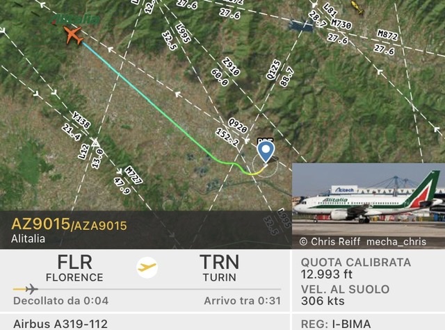 Torna a casa la Juventus da Firenze a Torino! 35 minuti di volo sono stimati. Vola su A319 Alitalia I-BIMA.
