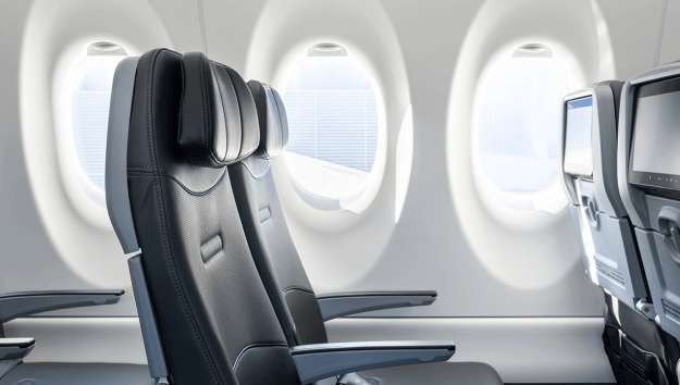 140 posti con una larghezza ampliata di 18,6 pollici, la più ampia disponibile per un aeromobile a corridoio singolo e la più ampia nella flotta di JetBlue.