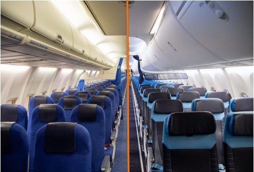 KLM Royal Dutch Airlines ha avviato il rinnovo completo delle cabine di 14 Boeing 737-800, sia per la Business Class che per la Economy Class. Gli aeromobili rinnovati, utilizzati principalmente per i voli europei, offrono ai passeggeri più comfort e stile e consumano meno carburante perché la cabina rinnovata pesa 700 chili in meno.