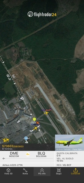 A brevissimo da Mosca Domidedovo partirà l’A320-271N VQ-BCF della S7 Airlines con destinazione Bologna.