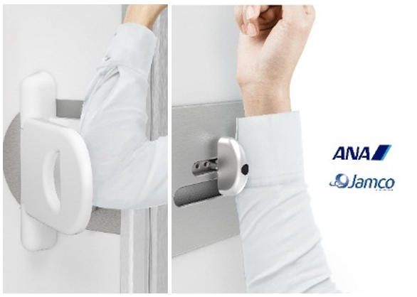 All Nippon Airways (ANA), la più grande compagnia aerea giapponese 5-Star per otto anni consecutivi, ha collaborato con JAMCO Corporation per sviluppare la prima porta al mondo che si apre senza utilizzare le mani per consentire un facile accesso alle toilette dei suoi aerei. L’innovativo progetto è stato sviluppato come parte del protocollo ANA Care Promise, e aiuterà a limitare la trasmissione di agenti patogeni. Le prime porte che sia aprono senza utilizzare le mani sono state introdotte sui voli nazionali a partire dal 1° maggio.