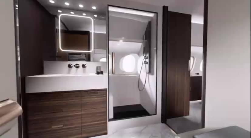 Gli oblò sono più grandi rispetto ali altri aeromobili di circa il 50%, regalano più luce all’interno della cabina. Anche un letto può essere a bordo e una doccia.