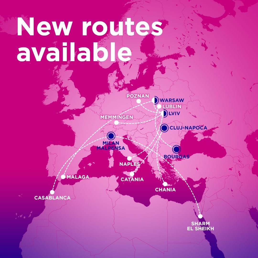 Altre rotte annunciare sono da Leopoli per Memmingen, Poznań e Varsavia. La Varsavia – Malaga, Lublino – Bourgas e la Cluj Napoca – Chania.