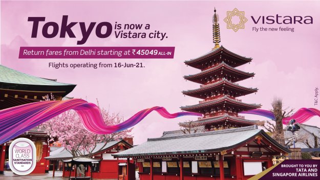 Vistara, la joint venture del gruppo Tata e Singapore Airlines, ha annunciato voli senza scalo tra Delhi (DEL) e Tokyo (HND) a partire dal 16 giugno 2021.