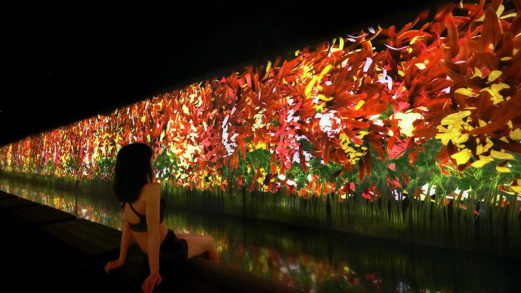 È’ alla tradizione di Rinkan-Chanoyu del periodo giapponese Muromachi (1336 – 1573), cioè una particolare cerimonia del tè dopo i bagni-sauna nella foresta, che si ispira infatti la nuova mostra – la terza in città – del collettivo di fama mondiale teamLab, un gruppo di specialisti in vari settori, che raggruppa artisti, programmatori, ingegneri, animatori CG, matematici e architetti, i cui sforzi producono innovativi spazi di immersione artistica digitale. Il collettivo ha esposto le sue installazioni in tutto il mondo, anche in Italia nel Japan Pavilion di Expo Milano 2015, e si è guadagnato così tanto successo da avere oggi esposizioni permanenti in Giappone così come in molte altre città del mondo come, Sydney, San Francisco, New York, Instanbul, Melbourne e Helsinki.