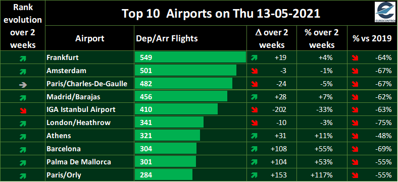 Prendendo spunto da ieri 13/5/2021, confrontato con i volumi di 14 giorni prima, si notano alcune importanti accelerazioni su alcuni scali europei.