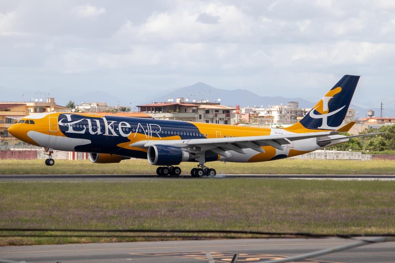 Tre giorni fa il 19 maggio a Napoli ha compiuto un volo di quasi un oretta l’A330-202 9H-PTN della Luke Air / Blue Panorama. E’ decollato alle 14:25 e poi e’ atterrato alle 15:18. Nell’immagine di Giorgio Adamo il momento dell’avvenuta toccata, fra qualche secondo sarà in cielo. E’ decollato per 06 e atterrato poi per 24. Ha raggiunto Ponza e poi ha invertito. Dopo il decollo ha compiuto una rapida virata.