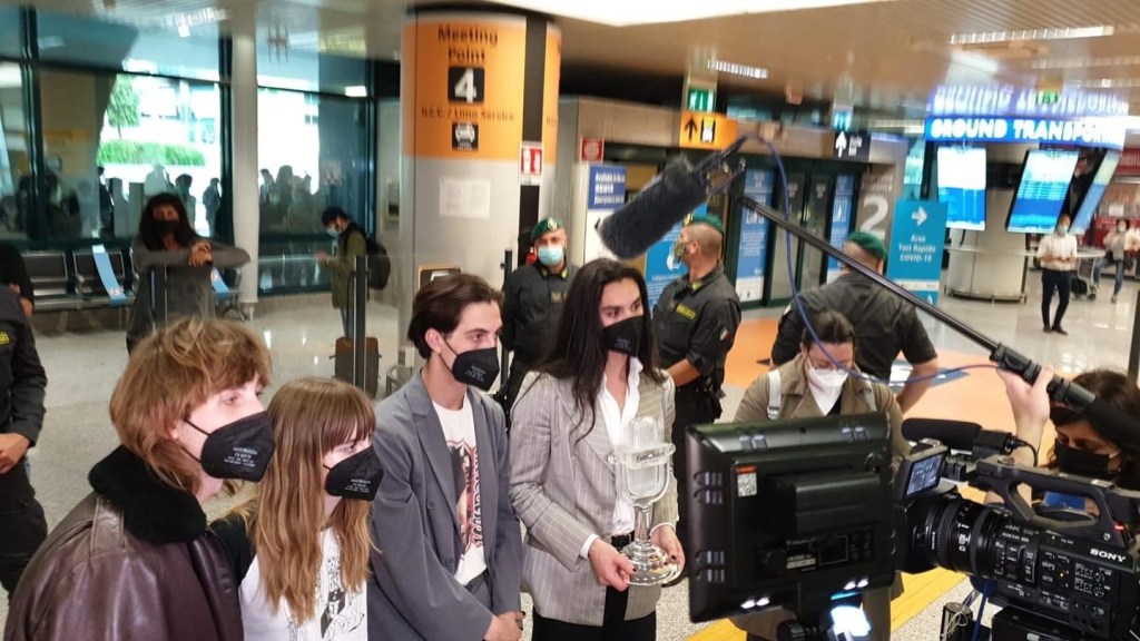 compagnie aeree I Maneskin ritornano in Italia con KLM Pubblicato da Italiavola il 23 Maggio 2021 I Maneskin reduci dalla vittoria all’Eurovision di ieri sera a Rotterdam con la canzoni Zitti e Buoni sono rientrati in Italia. Un volo di linea KLM li ha trasportati da Amsterdam con il trofeo che ha viaggiato nella loro mani. Condividi: Fai clic per condividere su Facebook (Si apre in una nuova finestra) Facebook Fai clic qui per condividere su LinkedIn (Si apre in una nuova finestra) LinkedIn Fai clic qui per condividere su Reddit (Si apre in una nuova finestra) Reddit Fai clic qui per condividere su Pinterest (Si apre in una nuova finestra) Pinterest Fai clic qui per condividere su Tumblr (Si apre in una nuova finestra) Tumblr Fai clic per condividere su X (Si apre in una nuova finestra) X Mi piace Caricamento... Correlati