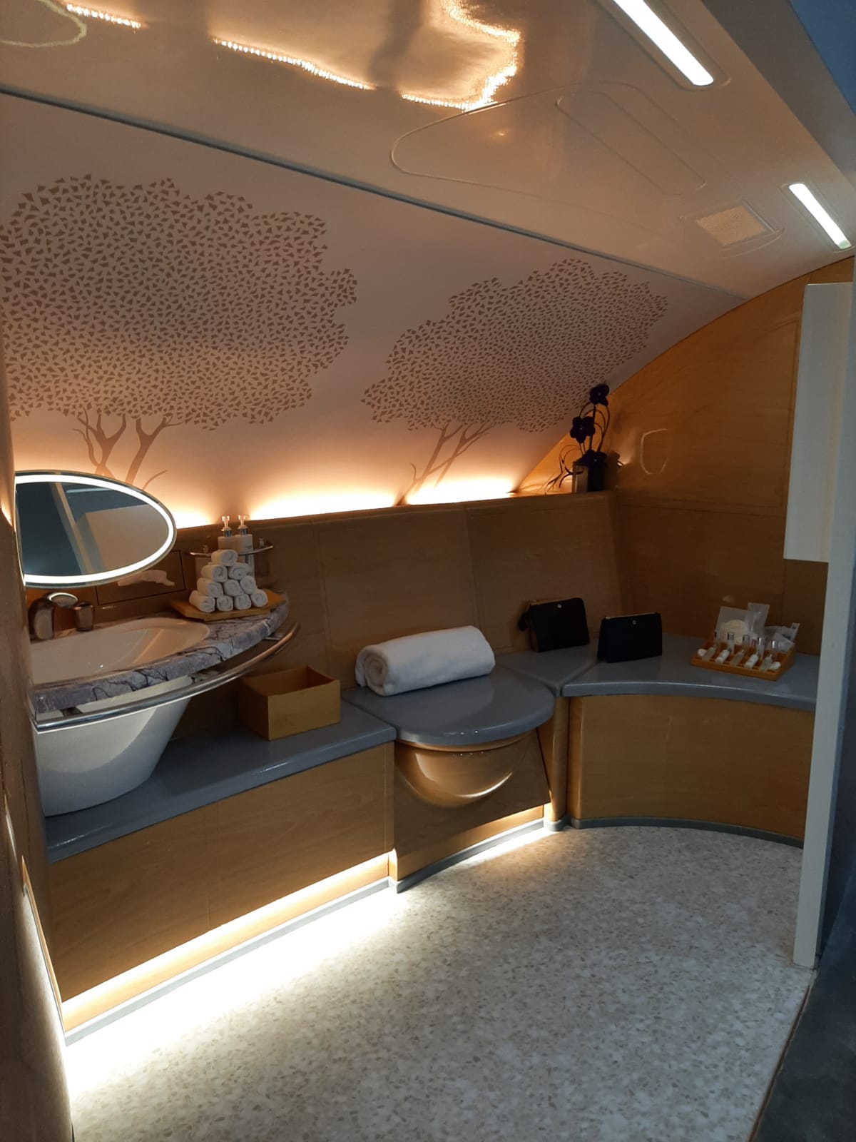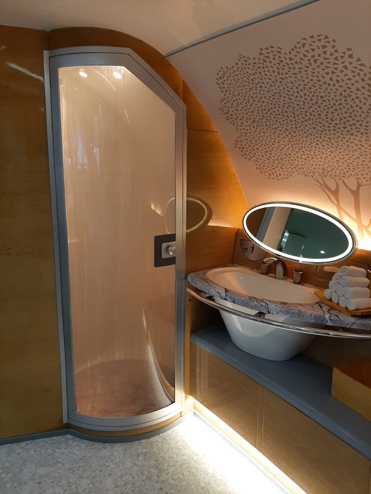 Una doccia a 40000ft nella shower SPA dell’A380 Emirates.
