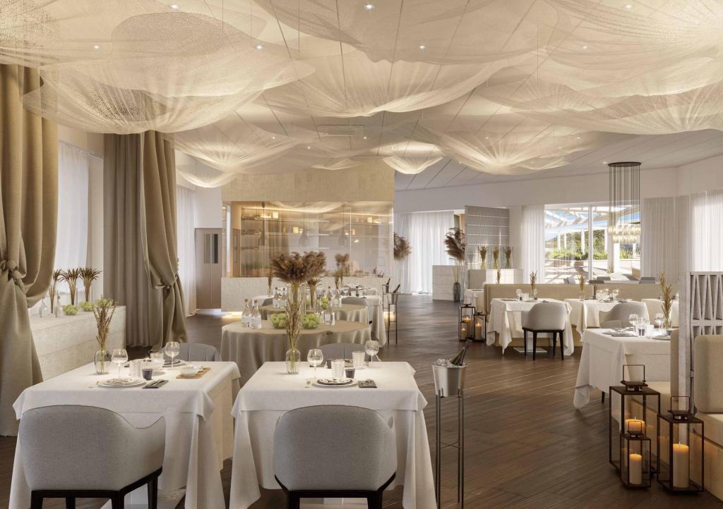 Il nuovo ristorante La Terrazza vi accoglie con l’eleganza raffinata che richiama la natura del Mediterraneo. Ha i colori della sabbia e dei legni portati dal mare, il bianco materico delle stoffe della tradizione.