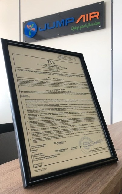 JumpAir per il mezzo di LinkedIn comunica di aver ricevuto dall’autorità lituana dell’aviazione civile la certificazione CAMO in armonia alle norme EASA.
