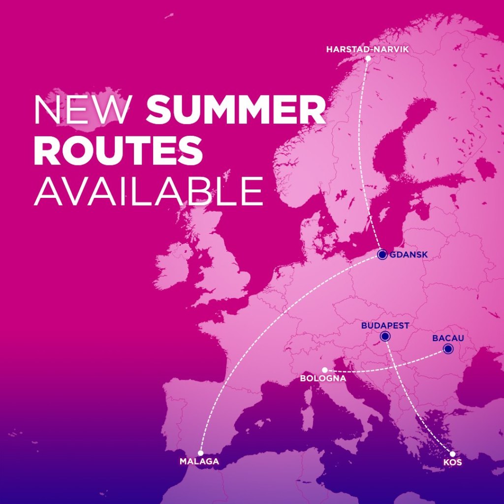 Si aggiungono anche al network la Danzica-Malaga e Harstad-Narvik – Danzica. oltre alla Budapest – Kos.