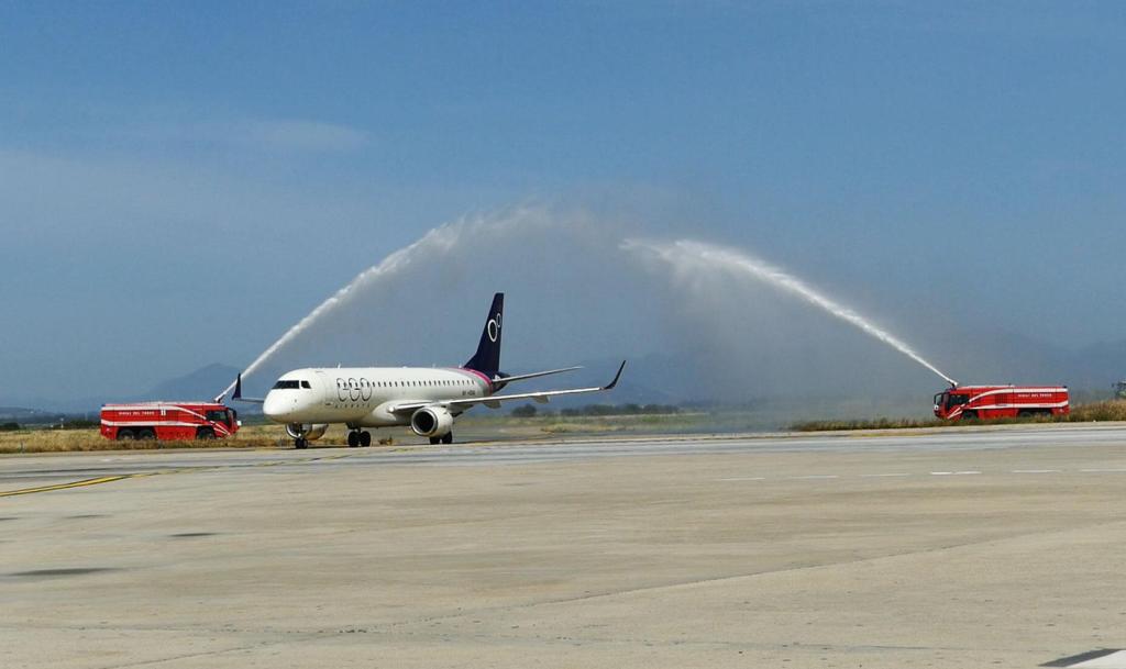 L’Embraer 190 “Martina”, della neonata compagnia aerea EGO Airways, è atterrato oggi per la prima volta a Cagliari, inaugurando così il collegamento tra l’hub di Forlì e il capoluogo della Sardegna. L’aereo, arrivato poco prima delle 11 della mattina, è stato accolto all’aeroporto “Mario Mameli” con la scenografica cerimonia del water cannon.
