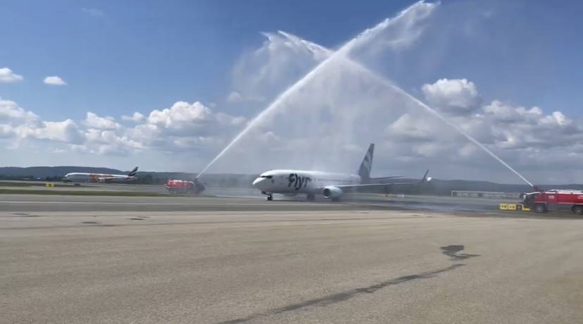E’ giunto a Oslo il primo B737/800 dellaFlyr. Il water cannon salute e’ stato l’atto celebrativo per ricordare questa giornata.