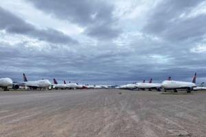 Le foto sono degli aerei parcheggiati scattate dal primo ufficiale Chris Dennis nel marzo 2020. Le sue foto sono ora conservate nel Museo del Delta.