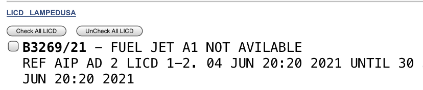 Il NOTAM emesso e’ eloquente: