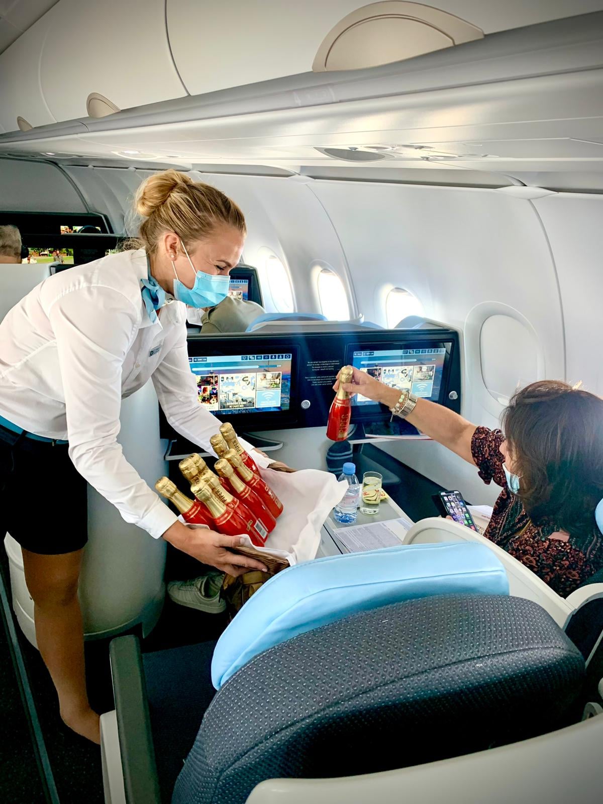 Ogni passeggero ha ricevuto in regalo una Baby Bottle di champagne, come quelle nelle fotografier, per celebrare il momento. Lo stesso il prossimo fine settimana.