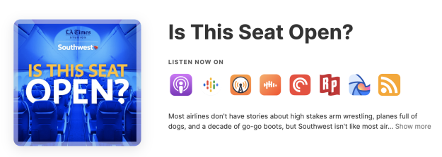 A causa delle restrizioni sulla licenza, iHeartRadio potrebbe non essere disponibile a bordo dei voli internazionali abilitati al Wi-Fi. Il prodotto iHeartRadio è disponibile solo su aeromobili abilitati Wi-Fi. “Questo posto è libero?” è finanziato da Southwest Airlines e prodotto da L.A. Times Studios e At Will Media. La redazione del Los Angeles Times non è stata coinvolta nella produzione di questo podcast.