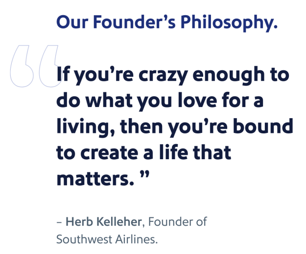 Quando si tratta di attività di branding e marketing, ha affermato Colleen, “non dobbiamo mai permettere che il marketing del Southwest sia così strategico da perdere il cuore e l’anima”. Con il cuore come punteggiatura emotiva del marchio che va avanti, Southwest ribadisce il proprio impegno a mantenere i propri valori e la propria cultura al centro della propria espressione aziendale.
