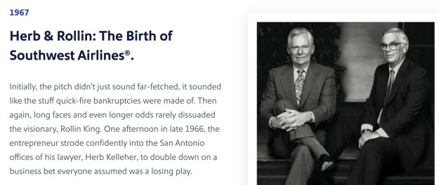 In un momento in cui i viaggi aerei erano in genere limitati ai “jet setter” d’élite e le compagnie aeree stavano introducendo più strutture tariffarie basate sulla classe, Southwest stava livellando il campo di gioco. Le sue tariffe basse; mentalità primo arrivato, primo servito; e Fun-LUVing Attitude ha segnato un allontanamento dalle compagnie aeree tradizionali e ha contribuito a definire il modello di business del sud-ovest. A metà degli anni ’70, Southwest era emersa come un vero disgregatore del settore, ma catturare il cuore della compagnia aerea in un’identità aziendale non era un compito per i deboli di cuore.