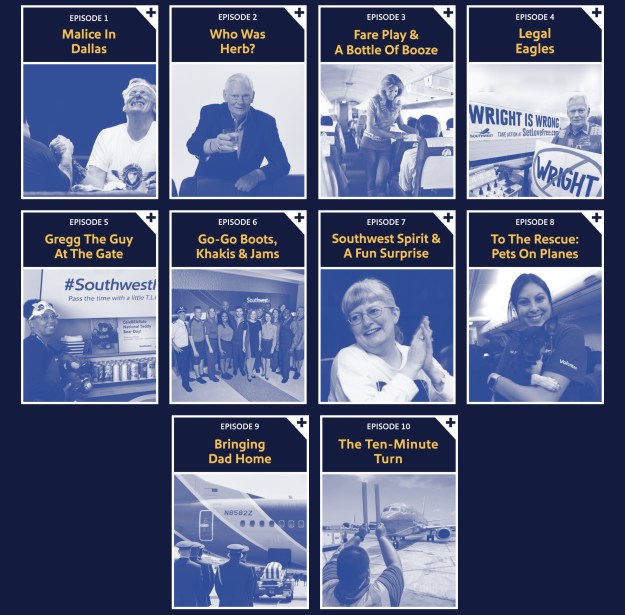 Gli episodi del podcast presentano momenti della storia di Southwest, a partire dalle storie dai primi anni della compagnia aerea fino ai giorni nostri, tra cui:
