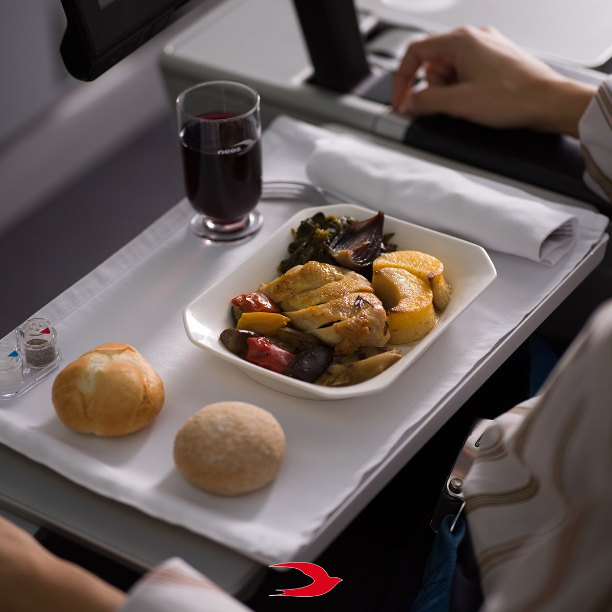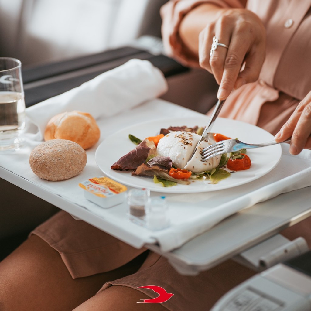 “Non trovate anche voi che quando si prepara un piatto pensando a chi lo assaggerà il gusto ne esca immensamente arricchito? Ecco, il nostro catering in volo è concepito pensando a voi fin dal primo momento: ingredienti, temperature, preparazione e mise en place. Perché cucinare per qualcun altro è sempre -prima di tutto- un atto d’amore”.