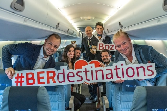 Nella foto con l’hashtag #BERdestinations e’ il tributo dato dall’aeroporto berlinese all’arrivo per la prima volta dell’aereo SkyAlps sullo scalo.