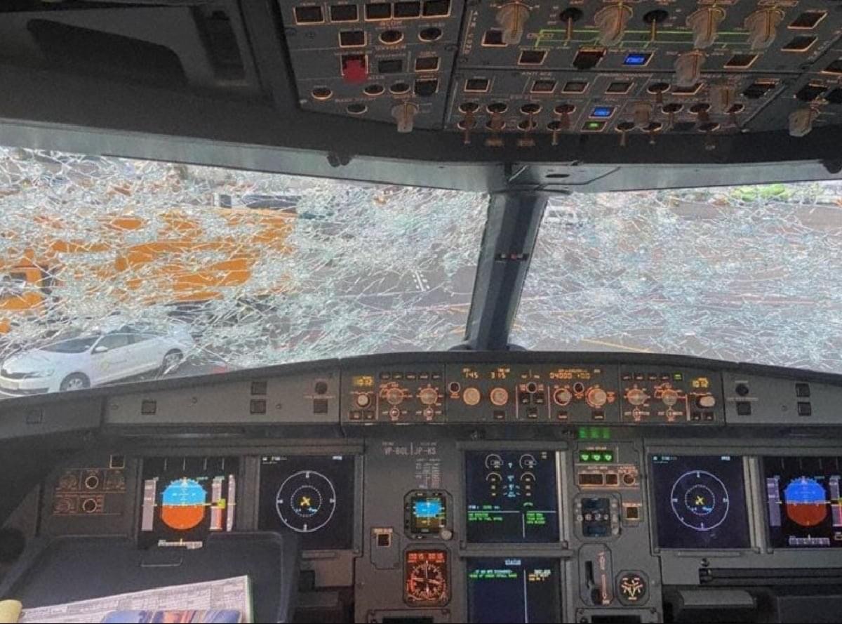 Danni ingenti a un A320-214 VP-BOL della S7 Airlines colpito sabato 3 luglio da una tempesta di grandine mentre volava da Chelyabinsk a Mosca