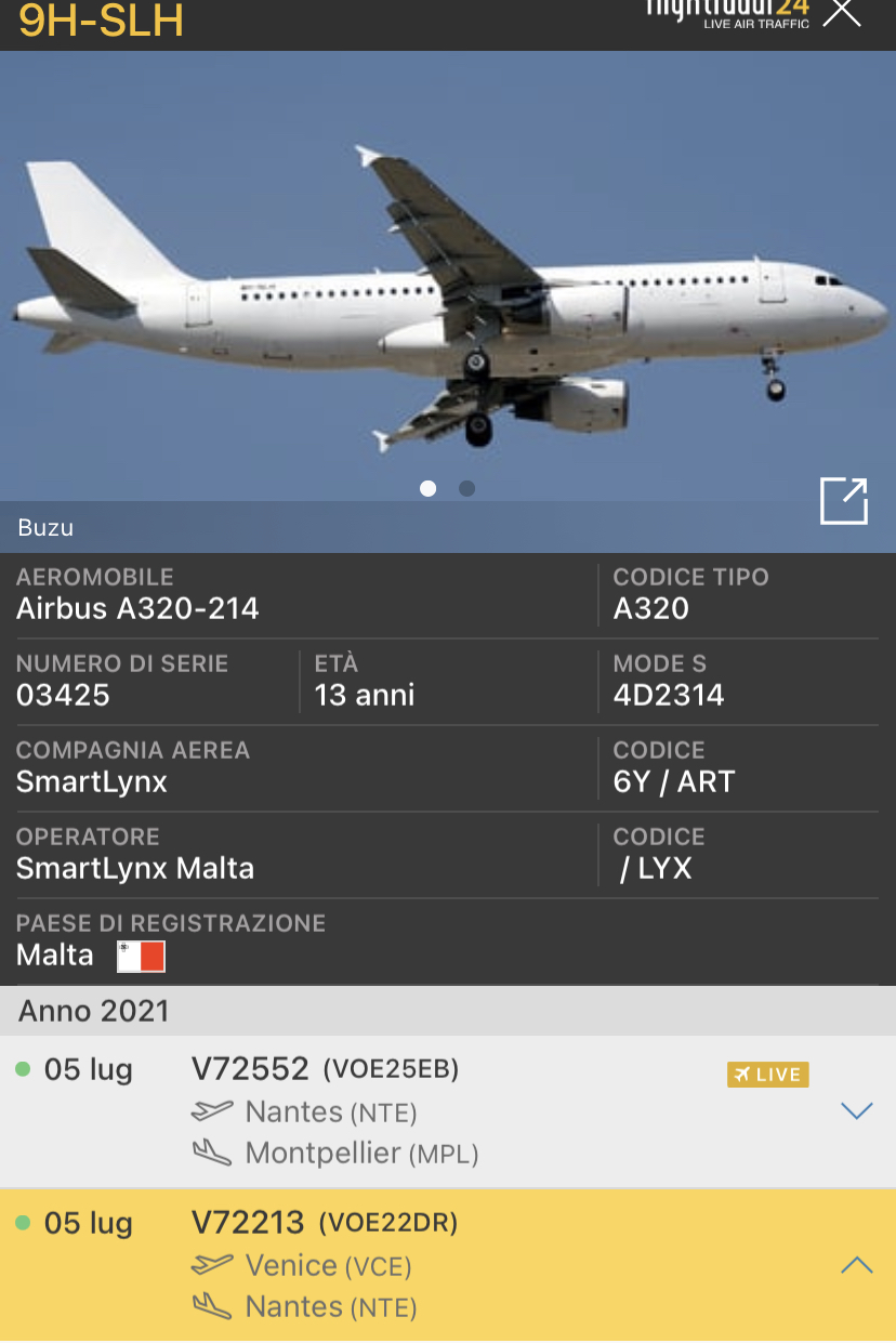 Questo A320-214 della Smart Lynx con le marche 9H-SLH e’ in noleggio ora alla Volotea ed e’ basato a Venezia insieme al gemello 9H-SLE, il quale recentemente ha visto l’aggiunta dei titoli Volotea.