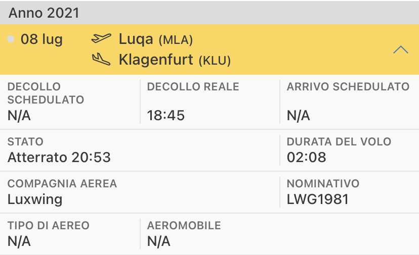 Con il volo LWG/BN1981 ha volato verso nord ed e’ atterrato a Klagenfurt poco più di due ore fa. Poi e’ ripartito per Bolzano ed e’ atterrato alle 22:50 circa come LWG/BN1982.