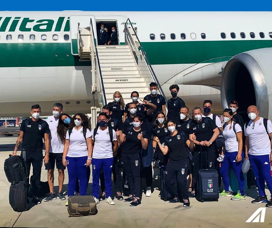 Il bigetto ha a bordo la squadra olimpionica per i giochi di Tokyo.