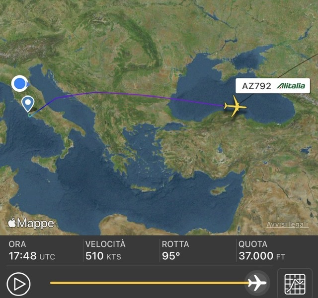 In questo momento, l’A330 e’ ora sul Mar Nero, allungherà abbastanza, perché non effettuerà, pare, la rotta Transiberiana.