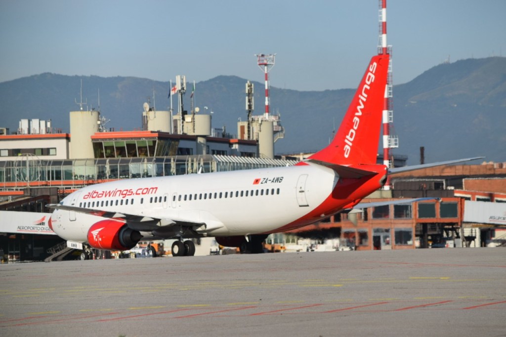 E’ il Boeing 737-400 ZA-AWB della compagnia aerea albanese Albawings, la quale ha riattivato due giorni fa il collegamento da Genova.