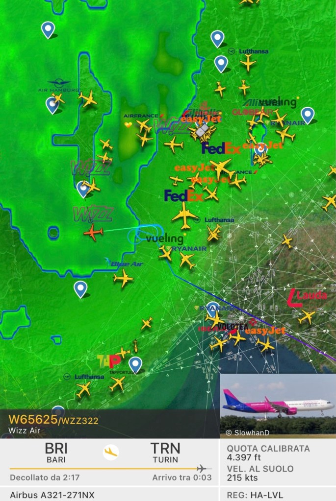Altri voli sono attualmente in holding in aree definite per attendere un eventuale miglioramento. L’attività perturbata e’ molto importante con Presenza di grandine. L’immagine da la condizione della situazione attuale.