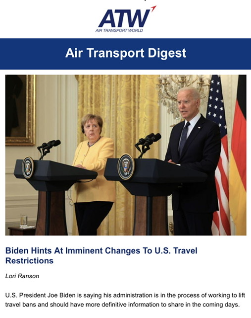 Potrebbe essere una questione di giorni come riporta Air Transport World per la riapertura dei corridoi turistici verso gli USA.